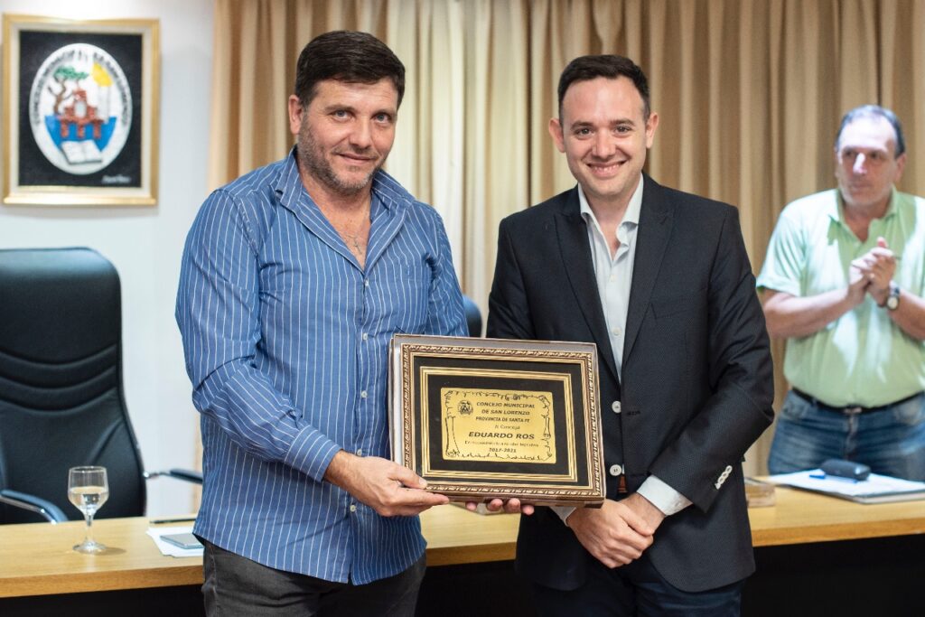 En la última sesión de los Concejales Soria, Fossato y Ros, se entregaron plaquetas recordatorias. Por su parte el Concejal Oggero, quien también culmina su mandato, renueva su banca tras haber sido electo para continuar por otro periodo legislativo. El Concejo Municipal agradece a todos por el trabajo realizado.